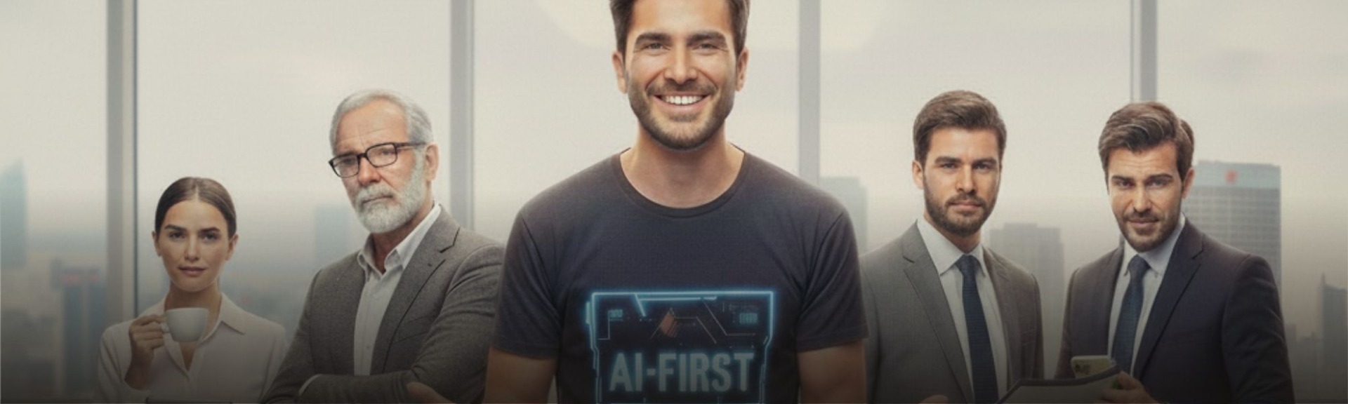 Jovem, vestindo uma camiseta com estampa holográfica "AI-First" e tênis que pareciam ter saído direto de uma nave espacial. Carregava um laptop ultrafino e um sorriso prepotente que irritou SEO instantaneamente.
